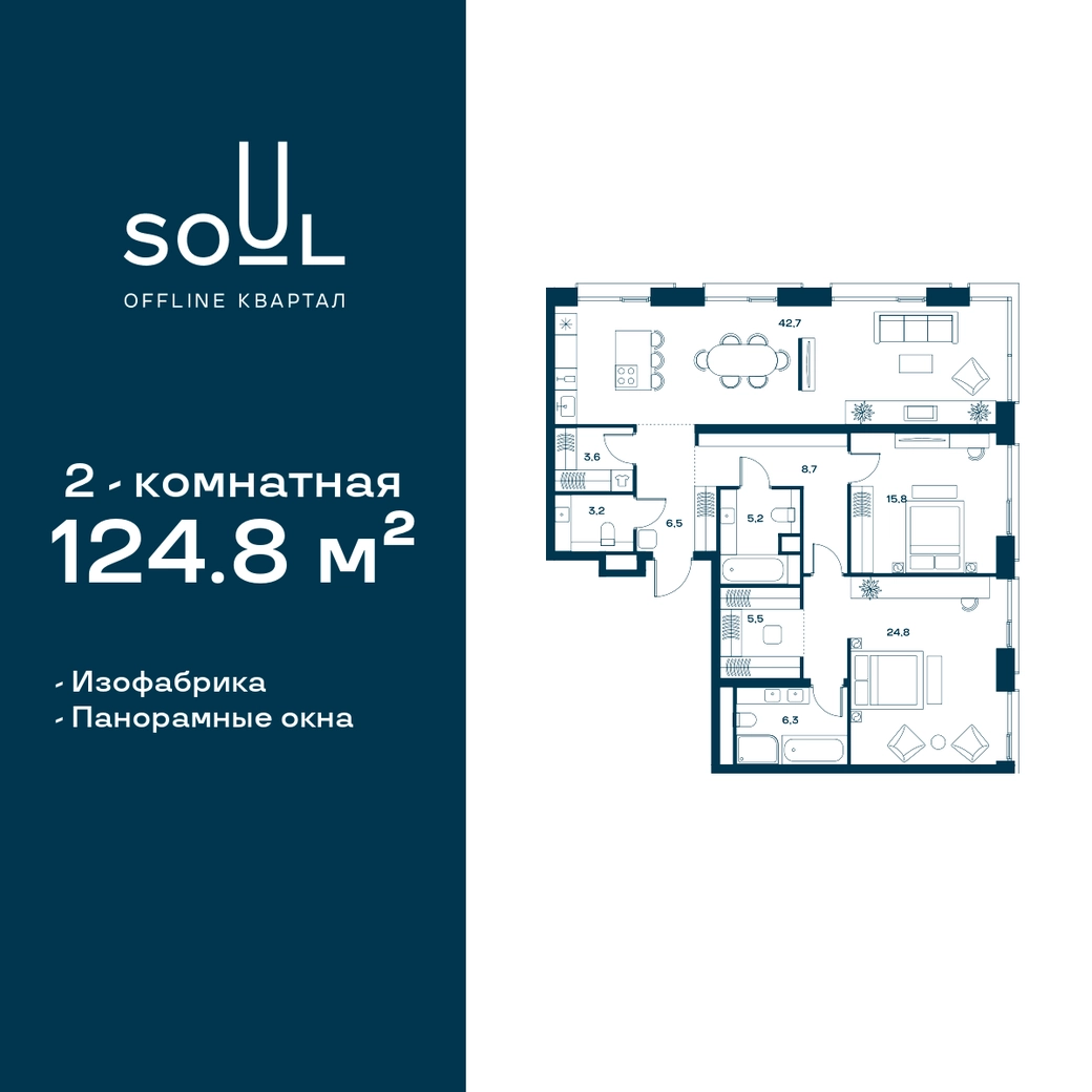 Цены указаны с условием 100% оплаты и стандартной ипотеки. Прямая продажа от застройщика! Продается 2-к. квартира квартира номер 202 общей площадью 124.8 кв.м. на 25-м этаже 25 этажного дома, Корпус 3. С отделкой White Box . Проект бизнес-класса Soul от девелопера FORMA. До метро Сокол 11 мин пешком. Архитектура от британского бюро SimpsonHaugh. Благоустройство дворов — Gillespies. Центральная площадь с фонтанами и местами для отдыха. Оборудованные детские и спортивные площадки. В центре проекта объект культурного наследия — общественное пространство Изофабрика, построенная в 30-х годах по проекту архитектора Георгия Гольца. Здесь будут располагаться мастерские для взрослых и детей, образовательный центр, рестораны и кафе. Квартиры с панорамными окнами, французскими балконами, мастер-спальнями и гардеробными. Высота потолков от 3,1 м. На последнем этаже 3,5 м. В проекте 2 детских сада на 100 и 200 малышей. Фит-рум, коворкинг, дизайнерские лобби, подземный паркинг и келлеры.О застройщике