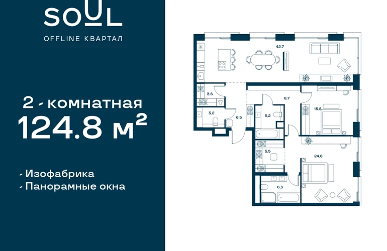 Цены указаны с условием 100% оплаты и стандартной ипотеки. Прямая продажа от застройщика! Продается 2-к. квартира квартира номер 202 общей площадью 124.8 кв.м. на 25-м этаже 25 этажного дома, Корпус 3. С отделкой White Box . Проект бизнес-класса Soul от девелопера FORMA. До метро Сокол 11 мин пешком. Архитектура от британского бюро SimpsonHaugh. Благоустройство дворов — Gillespies. Центральная площадь с фонтанами и местами для отдыха. Оборудованные детские и спортивные площадки. В центре проекта объект культурного наследия — общественное пространство Изофабрика, построенная в 30-х годах по проекту архитектора Георгия Гольца. Здесь будут располагаться мастерские для взрослых и детей, образовательный центр, рестораны и кафе. Квартиры с панорамными окнами, французскими балконами, мастер-спальнями и гардеробными. Высота потолков от 3,1 м. На последнем этаже 3,5 м. В проекте 2 детских сада на 100 и 200 малышей. Фит-рум, коворкинг, дизайнерские лобби, подземный паркинг и келлеры.О застройщике