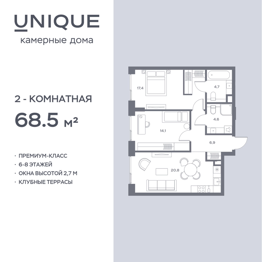 Семейная ипотека от 3,5% до 12 млн ₽. Прямая продажа от застройщика! Продается 2-к. квартира квартира номер 734 общей площадью 68.5 кв.м. на 6-м этаже 7 этажного дома, корпус UNIQUE (премиум-класс). Без отделки. Проект бизнес-класса Soul от девелопера FORMA. До метро Сокол 11 мин пешком. Архитектура от британского бюро SimpsonHaugh. Благоустройство дворов — Gillespies. Центральная площадь с фонтанами и местами для отдыха. Оборудованные детские и спортивные площадки. В центре проекта объект культурного наследия — общественное пространство Изофабрика, построенная в 30-х годах по проекту архитектора Георгия Гольца. Здесь будут располагаться мастерские для взрослых и детей, образовательный центр, рестораны и кафе. Квартиры с панорамными окнами, французскими балконами, мастер-спальнями и гардеробными. Высота потолков от 3,1 м. На последнем этаже 3,5 м. В проекте 2 детских сада на 100 и 200 малышей. Фит-рум, коворкинг, дизайнерские лобби, подземный паркинг и келлеры.О застройщике