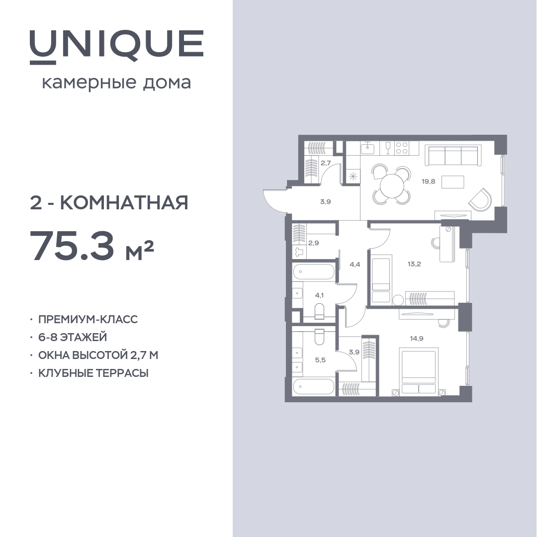 Выгода до 20%. Семейная ипотека от 3,5% до 12 млн ₽. Прямая продажа от застройщика! Продается 2-к. квартира квартира номер 736 общей площадью 75.3 кв.м. на 6-м этаже 7 этажного дома, корпус UNIQUE (премиум-класс). Без отделки. Проект бизнес-класса Soul от девелопера FORMA. До метро Сокол 11 мин пешком. Архитектура от британского бюро SimpsonHaugh. Благоустройство дворов — Gillespies. Центральная площадь с фонтанами и местами для отдыха. Оборудованные детские и спортивные площадки. В центре проекта объект культурного наследия — общественное пространство Изофабрика, построенная в 30-х годах по проекту архитектора Георгия Гольца. Здесь будут располагаться мастерские для взрослых и детей, образовательный центр, рестораны и кафе. Квартиры с панорамными окнами, французскими балконами, мастер-спальнями и гардеробными. Высота потолков от 3,1 м. На последнем этаже 3,5 м. В проекте 2 детских сада на 100 и 200 малышей. Фит-рум, коворкинг, дизайнерские лобби, подземный паркинг и келлеры.О застройщике