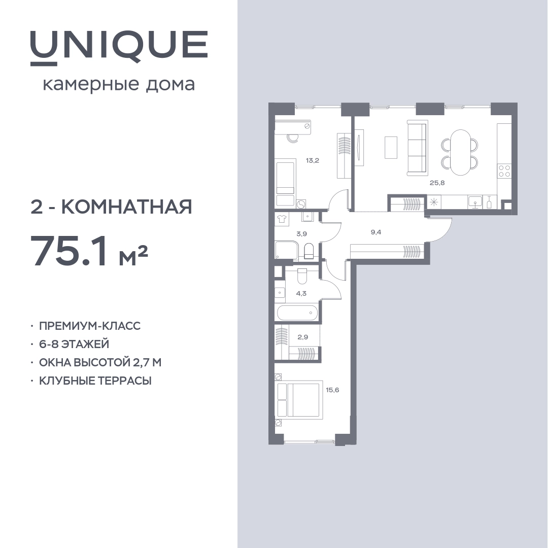 Цены указаны с условием 100% оплаты и стандартной ипотеки. Прямая продажа от застройщика! Продается 2-к. квартира квартира номер 746 общей площадью 75.1 кв.м. на 2-м этаже 8 этажного дома, корпус UNIQUE (премиум-класс). Без отделки. Проект бизнес-класса SOUL от девелопера FORMA. До метро Сокол 10 мин пешком. Архитектура от британского бюро SimpsonHaugh. Благоустройство дворов — Gillespies и GAFA. Территория состоит из культурного парка и приватных дворов. Озеленение в эстетике лесного оазиса. Насыщенное благоустройство: прогулочные тропинки, релакс-зоны, пряный и сенсорный сады, развивающие детские площадки и воркауты. В центре проекта объект культурного наследия — общественное пространство Изофабрика, построенная в 30-х годах по проекту архитектора Георгия Гольца. Здесь будут располагаться мастерские для взрослых и детей, выставочные залы, коворкинги, образовательный центр, рестораны и кафе. Квартиры с панорамными окнами, мастер-спальнями, гардеробными, классическими балконами и лоджиями, видовыми террасами. Высота потолков от 2,9 до 3,5 м. В проекте 2 детских сада на 100 и 200 малышей. Клубная гостиная, фитнес-рум, детская игровая комната, дизайнерские лобби, подземный паркинг и келлеры.О застройщике