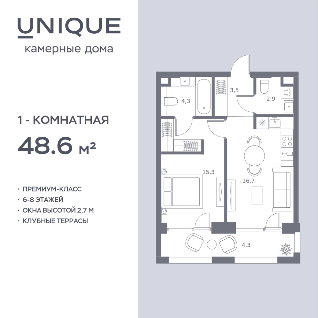 Комфортная рассрочка на 18 месяцев. Прямая продажа от застройщика! Продается 1-к. квартира квартира номер 824 общей площадью 48.6 кв.м. на 2-м этаже 6 этажного дома, корпус UNIQUE (премиум-класс). Без отделки. Проект бизнес-класса Soul от девелопера FORMA. До метро Сокол 11 мин пешком. Архитектура от британского бюро SimpsonHaugh. Благоустройство дворов — Gillespies. Центральная площадь с фонтанами и местами для отдыха. Оборудованные детские и спортивные площадки. В центре проекта объект культурного наследия — общественное пространство Изофабрика, построенная в 30-х годах по проекту архитектора Георгия Гольца. Здесь будут располагаться мастерские для взрослых и детей, образовательный центр, рестораны и кафе. Квартиры с панорамными окнами, французскими балконами, мастер-спальнями и гардеробными. Высота потолков от 3,1 м. На последнем этаже 3,5 м. В проекте 2 детских сада на 100 и 200 малышей. Фит-рум, коворкинг, дизайнерские лобби, подземный паркинг и келлеры.О застройщике