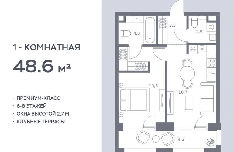 Комфортная рассрочка на 18 месяцев. Прямая продажа от застройщика! Продается 1-к. квартира квартира номер 824 общей площадью 48.6 кв.м. на 2-м этаже 6 этажного дома, корпус UNIQUE (премиум-класс). Без отделки. Проект бизнес-класса Soul от девелопера FORMA. До метро Сокол 11 мин пешком. Архитектура от британского бюро SimpsonHaugh. Благоустройство дворов — Gillespies. Центральная площадь с фонтанами и местами для отдыха. Оборудованные детские и спортивные площадки. В центре проекта объект культурного наследия — общественное пространство Изофабрика, построенная в 30-х годах по проекту архитектора Георгия Гольца. Здесь будут располагаться мастерские для взрослых и детей, образовательный центр, рестораны и кафе. Квартиры с панорамными окнами, французскими балконами, мастер-спальнями и гардеробными. Высота потолков от 3,1 м. На последнем этаже 3,5 м. В проекте 2 детских сада на 100 и 200 малышей. Фит-рум, коворкинг, дизайнерские лобби, подземный паркинг и келлеры.О застройщике