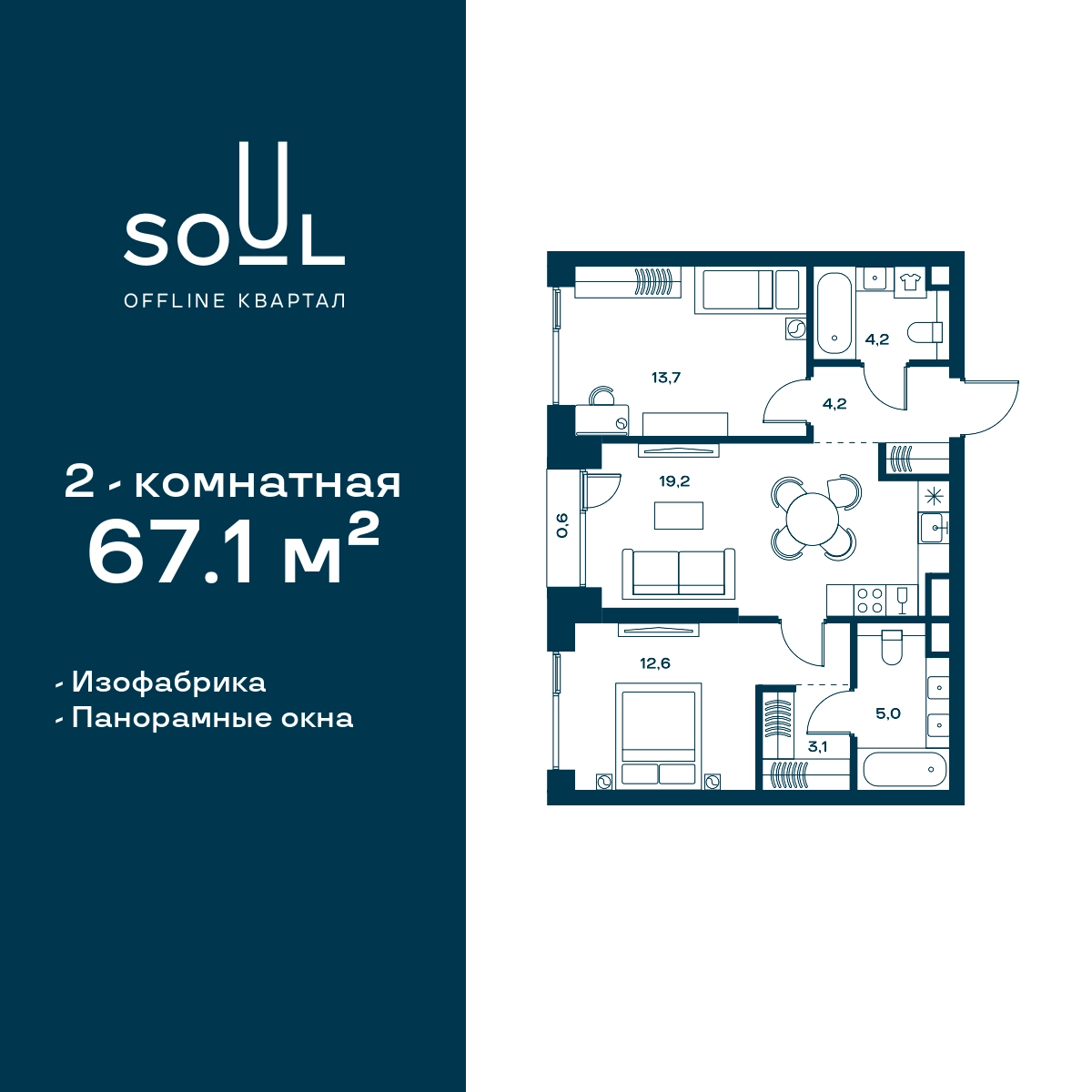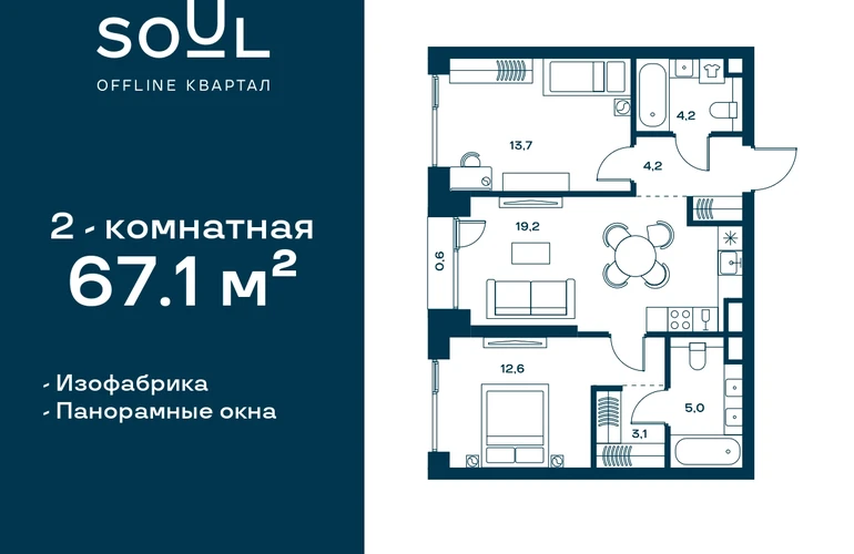 Выгода до 20%. Семейная ипотека от 3,5% до 12 млн ₽. Прямая продажа от застройщика! Продается 2-к. квартира квартира номер 613 общей площадью 67.1 кв.м. на 14-м этаже 29 этажного дома, Корпус 5. Без отделки. Проект бизнес-класса Soul от девелопера FORMA. До метро Сокол 11 мин пешком. Архитектура от британского бюро SimpsonHaugh. Благоустройство дворов — Gillespies. Центральная площадь с фонтанами и местами для отдыха. Оборудованные детские и спортивные площадки. В центре проекта объект культурного наследия — общественное пространство Изофабрика, построенная в 30-х годах по проекту архитектора Георгия Гольца. Здесь будут располагаться мастерские для взрослых и детей, образовательный центр, рестораны и кафе. Квартиры с панорамными окнами, французскими балконами, мастер-спальнями и гардеробными. Высота потолков от 3,1 м. На последнем этаже 3,5 м. В проекте 2 детских сада на 100 и 200 малышей. Фит-рум, коворкинг, дизайнерские лобби, подземный паркинг и келлеры.О застройщике