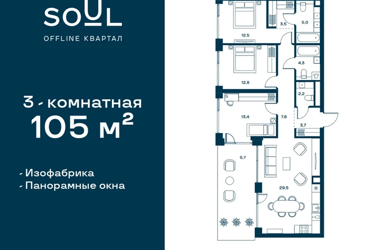Цены указаны с условием 100% оплаты и стандартной ипотеки. Прямая продажа от застройщика! Продается 3-к. квартира квартира номер 692 общей площадью 105 кв.м. на 24-м этаже 29 этажного дома, Корпус 5. Без отделки. Проект бизнес-класса SOUL от девелопера FORMA. До метро Сокол 10 мин пешком. Архитектура от британского бюро SimpsonHaugh. Благоустройство дворов — Gillespies. Центральная площадь с фонтанами и местами для отдыха. Оборудованные детские и спортивные площадки. В центре проекта объект культурного наследия — общественное пространство Изофабрика, построенная в 30-х годах по проекту архитектора Георгия Гольца. Здесь будут располагаться мастерские для взрослых и детей, образовательный центр, рестораны и кафе. Квартиры с панорамными окнами, французскими балконами, мастер-спальнями и гардеробными. Высота потолков от 3,1 м. На последнем этаже 3,5 м. В проекте 2 детских сада на 100 и 200 малышей. Фит-рум, коворкинг, дизайнерские лобби, подземный паркинг и келлеры.О застройщике