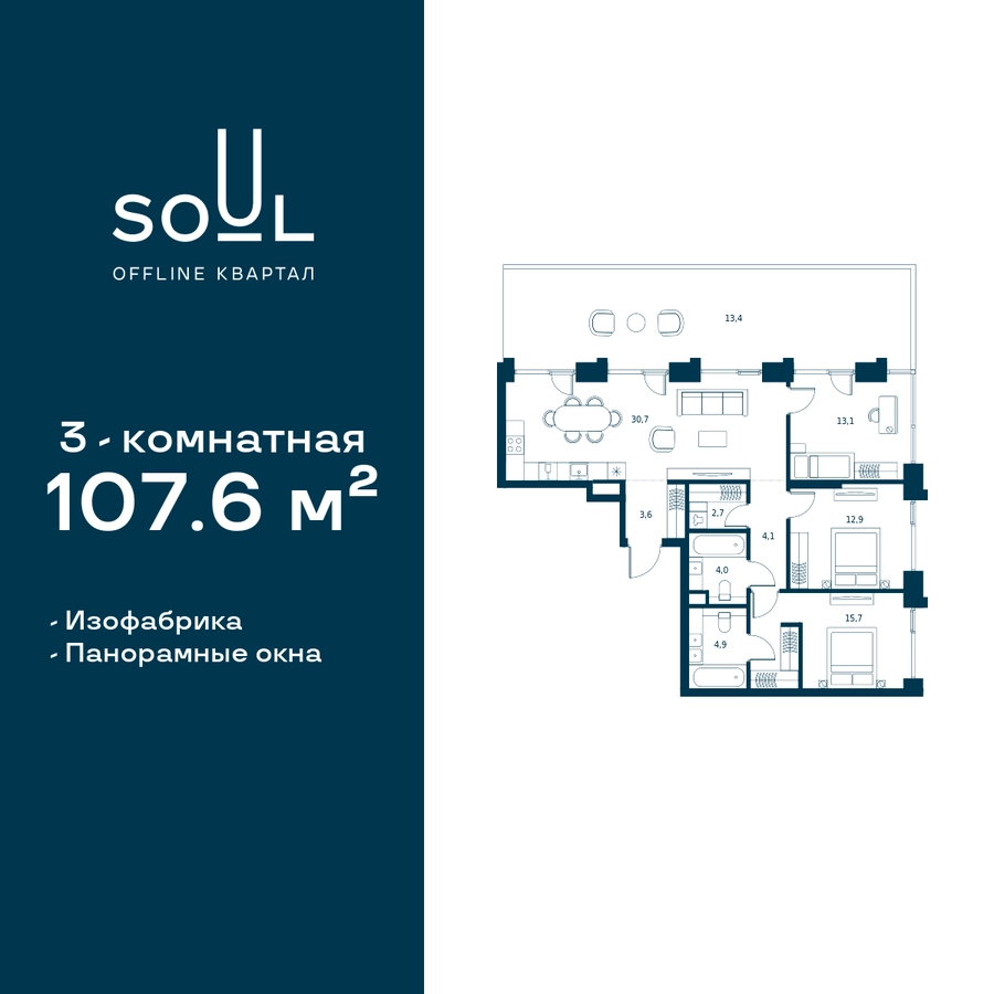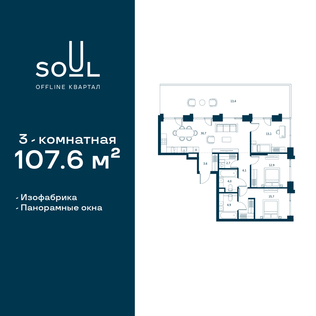 Семейная ипотека от 3,5% до 12 млн ₽. Прямая продажа от застройщика! Продается 3-к. квартира квартира номер 410 общей площадью 107.6 кв.м. на 19-м этаже 27 этажного дома, Корпус 4. С отделкой White Box . Проект бизнес-класса Soul от девелопера FORMA. До метро Сокол 11 мин пешком. Архитектура от британского бюро SimpsonHaugh. Благоустройство дворов — Gillespies. Центральная площадь с фонтанами и местами для отдыха. Оборудованные детские и спортивные площадки. В центре проекта объект культурного наследия — общественное пространство Изофабрика, построенная в 30-х годах по проекту архитектора Георгия Гольца. Здесь будут располагаться мастерские для взрослых и детей, образовательный центр, рестораны и кафе. Квартиры с панорамными окнами, французскими балконами, мастер-спальнями и гардеробными. Высота потолков от 3,1 м. На последнем этаже 3,5 м. В проекте 2 детских сада на 100 и 200 малышей. Фит-рум, коворкинг, дизайнерские лобби, подземный паркинг и келлеры.О застройщике