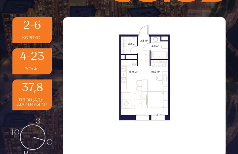 Продаётся квартира-студия площадью 37.8 м² на 4 этаже в Жилом Комплексе "Союз". Уникальный жилой спортивно-оздоровительный квартал с рекордным количеством олимпийских видов спорта, доступных жителям 24/7. Из 9 га застройки 7га отданы под спортивную инфраструктуру. В открытом доступе у жителей спортивно-оздоровительного кластера юности и здоровья: - Ледовая арена для хоккея и фигурного катания, - Футбольные поля для тренировок, - Спортивный зал для фехтования, - Бассейн на 6 дорожек, - Центр единоборств, - 4 крытых площадки для настольного тенниса, - 7 теннисных кортов (крытых и открытых), - 4 крытых площадки для сквоша, - Легкоатлетический стадион, - площадки для баскетбола и волейбола. На выбор будущим жильцам ЖК представляется 3 вида балконов, различные гардеробные и просторные холлы, продуманные планировочные решения с мастер-спальнями, кабинетами, санузлами, постирочными, а также панорамное остекление. Комплекс оснащен разнообразной собственной инфраструктурой. На территории ЖК есть зона для пикников, розарий, сосновые, каштановые и дубовые аллеи, площадки ворк-аута и йоги, а также ресторан «ШАБАДА» Сосо Павлиашвили с просторной прогулочной зоной с водными элементами, садом ароматных трав и открытой сценой. В благоустройство квартала входит закрытый и безопасный двор, фонтан, арт-объекты, световой дизайн, интерактивные площадки для детей разных возрастов. Рядом с Комплексом располагается большое количество локаций, способствующих активному времяпрепровождению: - Парк Будущего, - Леоновская роща, - Национальный парк, - Лосиный остров, - Парк Сокольники, - Главный Ботанический сад, - РАН, - ВДНХ, - Парк Останкино, - Парк Свиблово, - Пойма реки Яуза.О застройщике