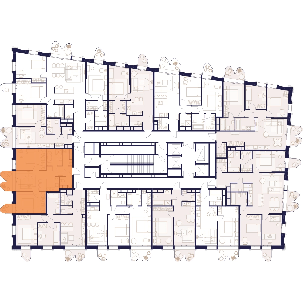 Уникальные форматы квартир с мастер-спальнями, приватными террасами, балконами, а также пентхаусы с открыточными видами на город.