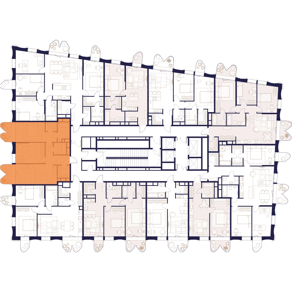 Уникальные форматы квартир с мастер-спальнями, приватными террасами, балконами, а также пентхаусы с открыточными видами на город.