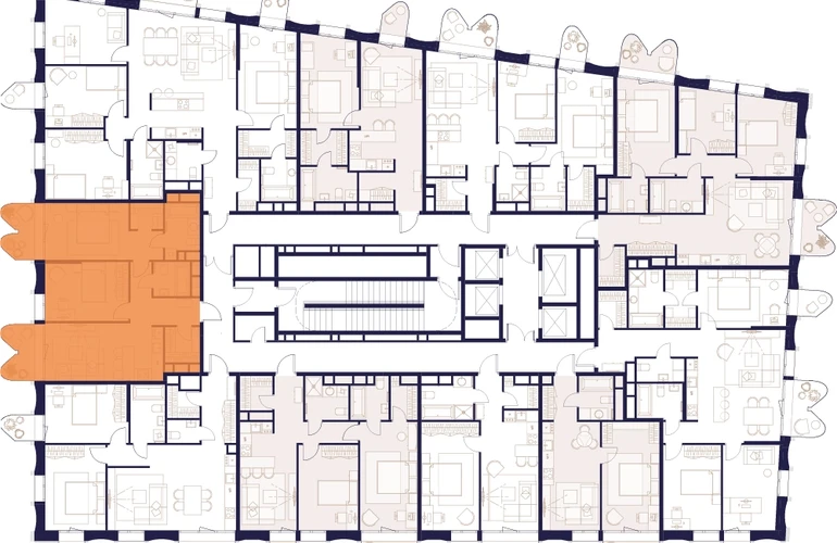 Уникальные форматы квартир с мастер-спальнями, приватными террасами, балконами, а также пентхаусы с открыточными видами на город.