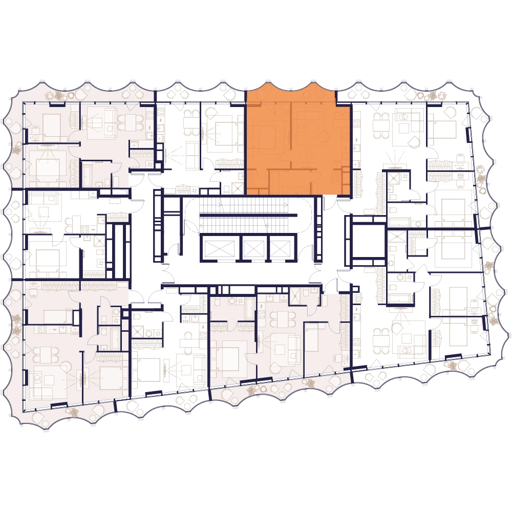 Уникальные форматы квартир с мастер-спальнями, приватными террасами, балконами, а также пентхаусы с открыточными видами на город.