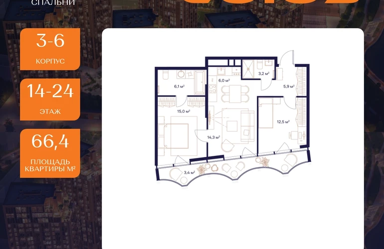 Продаётся 2-комнатная квартира площадью 66.4 м² на 14 этаже в Жилом Комплексе "Союз". Уникальный жилой спортивно-оздоровительный квартал с рекордным количеством олимпийских видов спорта, доступных жителям 24/7. Из 9 га застройки 7га отданы под спортивную инфраструктуру. В открытом доступе у жителей спортивно-оздоровительного кластера юности и здоровья: - Ледовая арена для хоккея и фигурного катания, - Футбольные поля для тренировок, - Спортивный зал для фехтования, - Бассейн на 6 дорожек, - Центр единоборств, - 4 крытых площадки для настольного тенниса, - 7 теннисных кортов (крытых и открытых), - 4 крытых площадки для сквоша, - Легкоатлетический стадион, - площадки для баскетбола и волейбола. На выбор будущим жильцам ЖК представляется 3 вида балконов, различные гардеробные и просторные холлы, продуманные планировочные решения с мастер-спальнями, кабинетами, санузлами, постирочными, а также панорамное остекление. Комплекс оснащен разнообразной собственной инфраструктурой. На территории ЖК есть зона для пикников, розарий, сосновые, каштановые и дубовые аллеи, площадки ворк-аута и йоги, а также ресторан «ШАБАДА» Сосо Павлиашвили с просторной прогулочной зоной с водными элементами, садом ароматных трав и открытой сценой. В благоустройство квартала входит закрытый и безопасный двор, фонтан, арт-объекты, световой дизайн, интерактивные площадки для детей разных возрастов. Рядом с Комплексом располагается большое количество локаций, способствующих активному времяпрепровождению: - Парк Будущего, - Леоновская роща, - Национальный парк, - Лосиный остров, - Парк Сокольники, - Главный Ботанический сад, - РАН, - ВДНХ, - Парк Останкино, - Парк Свиблово, - Пойма реки Яуза.О застройщике