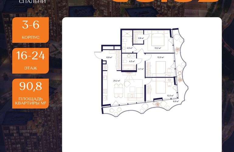 Продаётся 3-комнатная квартира площадью 90.8 м² на 16 этаже в Жилом Комплексе "Союз". Уникальный жилой спортивно-оздоровительный квартал с рекордным количеством олимпийских видов спорта, доступных жителям 24/7. Из 9 га застройки 7га отданы под спортивную инфраструктуру. В открытом доступе у жителей спортивно-оздоровительного кластера юности и здоровья: - Ледовая арена для хоккея и фигурного катания, - Футбольные поля для тренировок, - Спортивный зал для фехтования, - Бассейн на 6 дорожек, - Центр единоборств, - 4 крытых площадки для настольного тенниса, - 7 теннисных кортов (крытых и открытых), - 4 крытых площадки для сквоша, - Легкоатлетический стадион, - площадки для баскетбола и волейбола. На выбор будущим жильцам ЖК представляется 3 вида балконов, различные гардеробные и просторные холлы, продуманные планировочные решения с мастер-спальнями, кабинетами, санузлами, постирочными, а также панорамное остекление. Комплекс оснащен разнообразной собственной инфраструктурой. На территории ЖК есть зона для пикников, розарий, сосновые, каштановые и дубовые аллеи, площадки ворк-аута и йоги, а также ресторан «ШАБАДА» Сосо Павлиашвили с просторной прогулочной зоной с водными элементами, садом ароматных трав и открытой сценой. В благоустройство квартала входит закрытый и безопасный двор, фонтан, арт-объекты, световой дизайн, интерактивные площадки для детей разных возрастов. Рядом с Комплексом располагается большое количество локаций, способствующих активному времяпрепровождению: - Парк Будущего, - Леоновская роща, - Национальный парк, - Лосиный остров, - Парк Сокольники, - Главный Ботанический сад, - РАН, - ВДНХ, - Парк Останкино, - Парк Свиблово, - Пойма реки Яуза.О застройщике