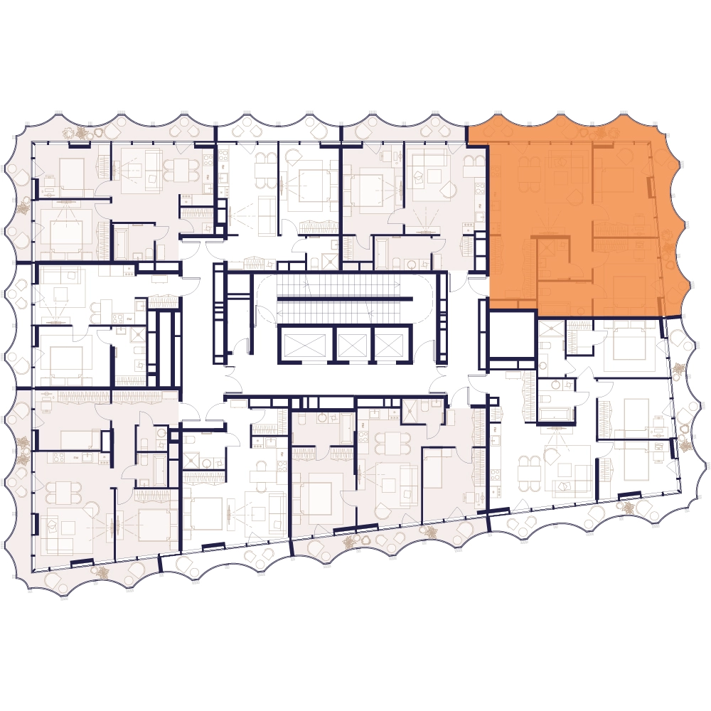 Уникальные форматы квартир с мастер-спальнями, приватными террасами, балконами, а также пентхаусы с открыточными видами на город.