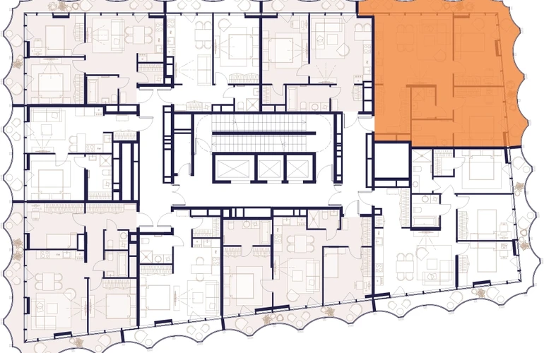 Уникальные форматы квартир с мастер-спальнями, приватными террасами, балконами, а также пентхаусы с открыточными видами на город.