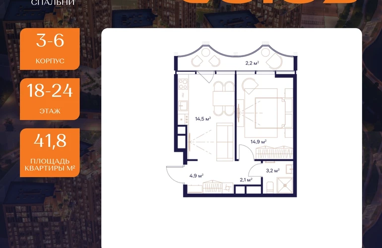 Продаётся 1-комнатная квартира площадью 41.8 м² на 18 этаже в Жилом Комплексе "Союз". Уникальный жилой спортивно-оздоровительный квартал с рекордным количеством олимпийских видов спорта, доступных жителям 24/7. Из 9 га застройки 7га отданы под спортивную инфраструктуру. В открытом доступе у жителей спортивно-оздоровительного кластера юности и здоровья: - Ледовая арена для хоккея и фигурного катания, - Футбольные поля для тренировок, - Спортивный зал для фехтования, - Бассейн на 6 дорожек, - Центр единоборств, - 4 крытых площадки для настольного тенниса, - 7 теннисных кортов (крытых и открытых), - 4 крытых площадки для сквоша, - Легкоатлетический стадион, - площадки для баскетбола и волейбола. На выбор будущим жильцам ЖК представляется 3 вида балконов, различные гардеробные и просторные холлы, продуманные планировочные решения с мастер-спальнями, кабинетами, санузлами, постирочными, а также панорамное остекление. Комплекс оснащен разнообразной собственной инфраструктурой. На территории ЖК есть зона для пикников, розарий, сосновые, каштановые и дубовые аллеи, площадки ворк-аута и йоги, а также ресторан «ШАБАДА» Сосо Павлиашвили с просторной прогулочной зоной с водными элементами, садом ароматных трав и открытой сценой. В благоустройство квартала входит закрытый и безопасный двор, фонтан, арт-объекты, световой дизайн, интерактивные площадки для детей разных возрастов. Рядом с Комплексом располагается большое количество локаций, способствующих активному времяпрепровождению: - Парк Будущего, - Леоновская роща, - Национальный парк, - Лосиный остров, - Парк Сокольники, - Главный Ботанический сад, - РАН, - ВДНХ, - Парк Останкино, - Парк Свиблово, - Пойма реки Яуза.О застройщике