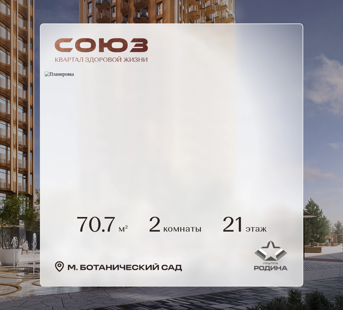 Рассрочка 0%Продаётся 2-комнатная квартира площадью 70.7 м² на 21 этаже в Жилом Комплексе «Союз».