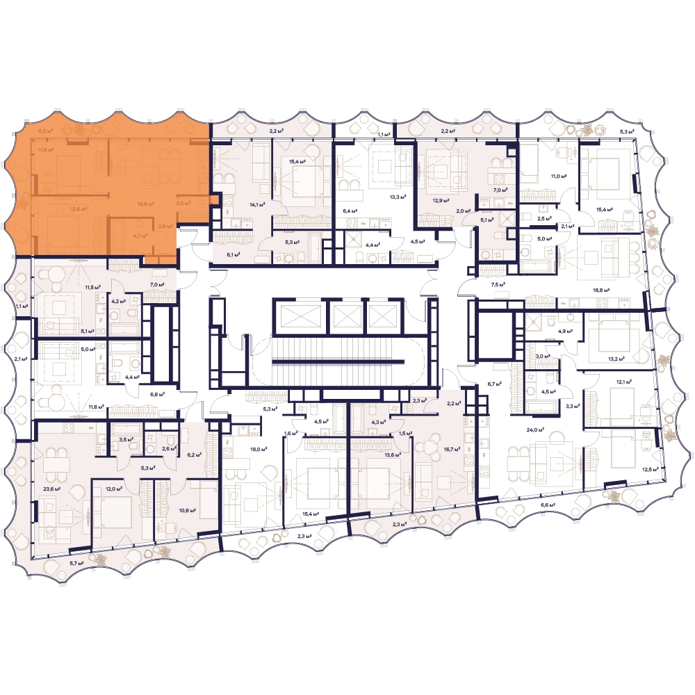 Уникальные форматы квартир с мастер-спальнями, приватными террасами, балконами, а также пентхаусы с открыточными видами на город.