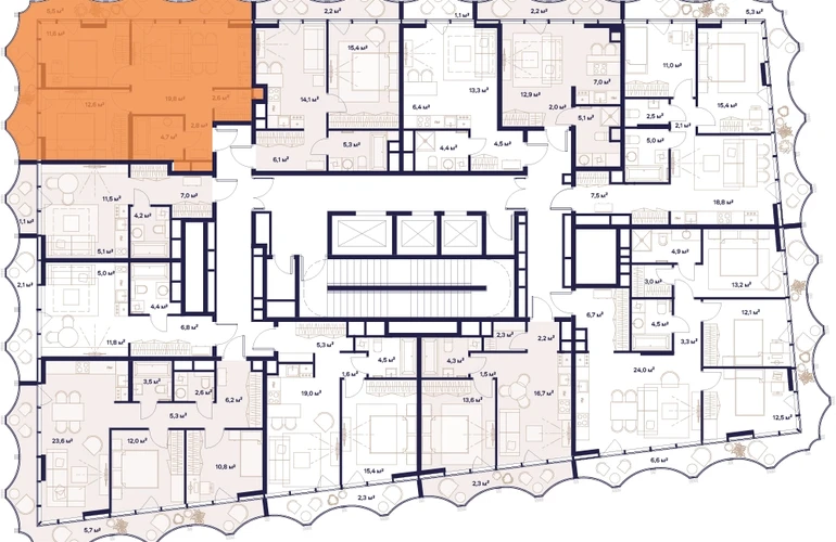 Уникальные форматы квартир с мастер-спальнями, приватными террасами, балконами, а также пентхаусы с открыточными видами на город.