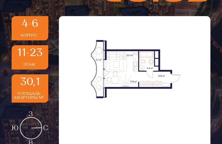 Продаётся квартира-студия площадью 30.1 м² на 11 этаже в Жилом Комплексе "Союз". Уникальный жилой спортивно-оздоровительный квартал с рекордным количеством олимпийских видов спорта, доступных жителям 24/7. Из 9 га застройки 7га отданы под спортивную инфраструктуру. В открытом доступе у жителей спортивно-оздоровительного кластера юности и здоровья: - Ледовая арена для хоккея и фигурного катания, - Футбольные поля для тренировок, - Спортивный зал для фехтования, - Бассейн на 6 дорожек, - Центр единоборств, - 4 крытых площадки для настольного тенниса, - 7 теннисных кортов (крытых и открытых), - 4 крытых площадки для сквоша, - Легкоатлетический стадион, - площадки для баскетбола и волейбола. На выбор будущим жильцам ЖК представляется 3 вида балконов, различные гардеробные и просторные холлы, продуманные планировочные решения с мастер-спальнями, кабинетами, санузлами, постирочными, а также панорамное остекление. Комплекс оснащен разнообразной собственной инфраструктурой. На территории ЖК есть зона для пикников, розарий, сосновые, каштановые и дубовые аллеи, площадки ворк-аута и йоги, а также ресторан «ШАБАДА» Сосо Павлиашвили с просторной прогулочной зоной с водными элементами, садом ароматных трав и открытой сценой. В благоустройство квартала входит закрытый и безопасный двор, фонтан, арт-объекты, световой дизайн, интерактивные площадки для детей разных возрастов. Рядом с Комплексом располагается большое количество локаций, способствующих активному времяпрепровождению: - Парк Будущего, - Леоновская роща, - Национальный парк, - Лосиный остров, - Парк Сокольники, - Главный Ботанический сад, - РАН, - ВДНХ, - Парк Останкино, - Парк Свиблово, - Пойма реки Яуза.О застройщике