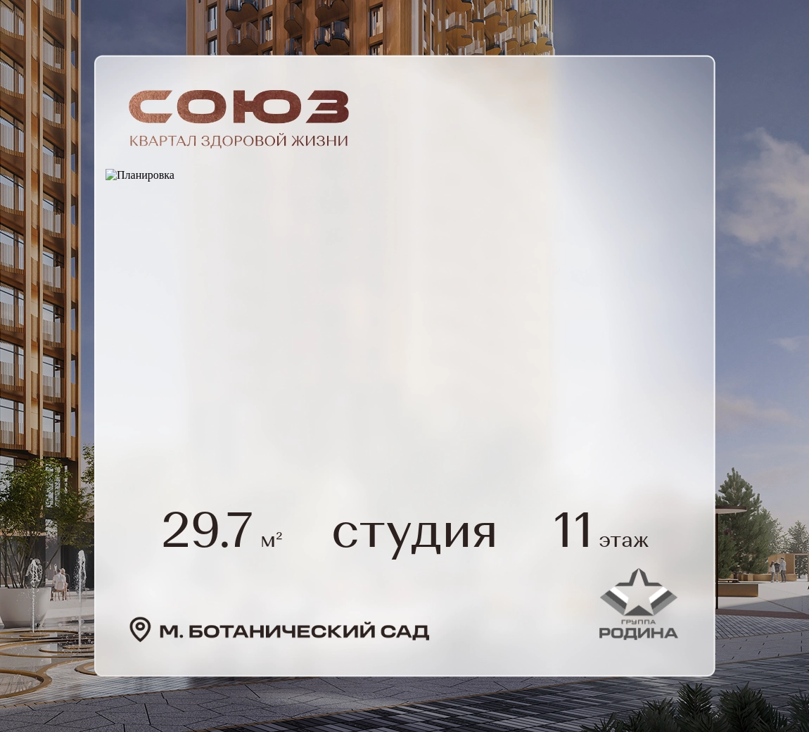 Рассрочка 0%Продаётся квартира-студия площадью 29.7 м² на 11 этаже в Жилом Комплексе «Союз».