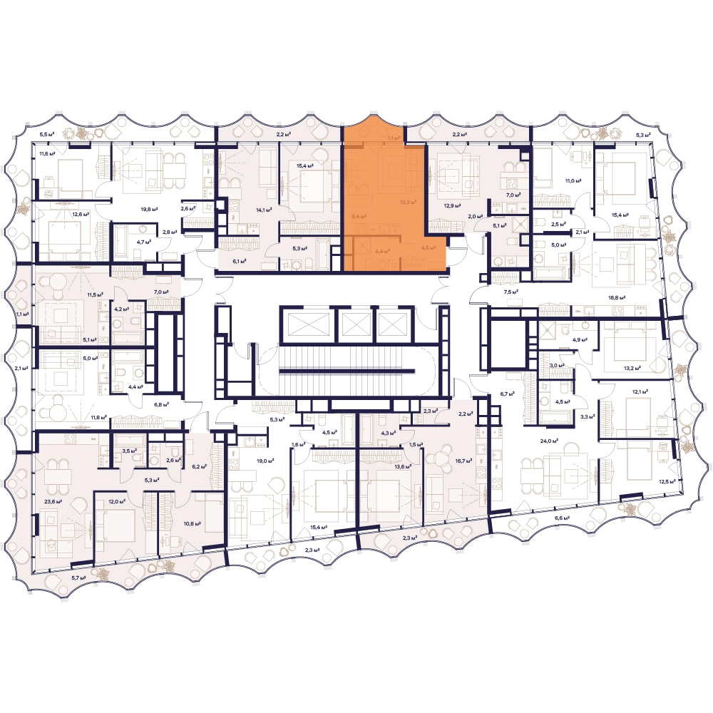 Уникальные форматы квартир с мастер-спальнями, приватными террасами, балконами, а также пентхаусы с открыточными видами на город.