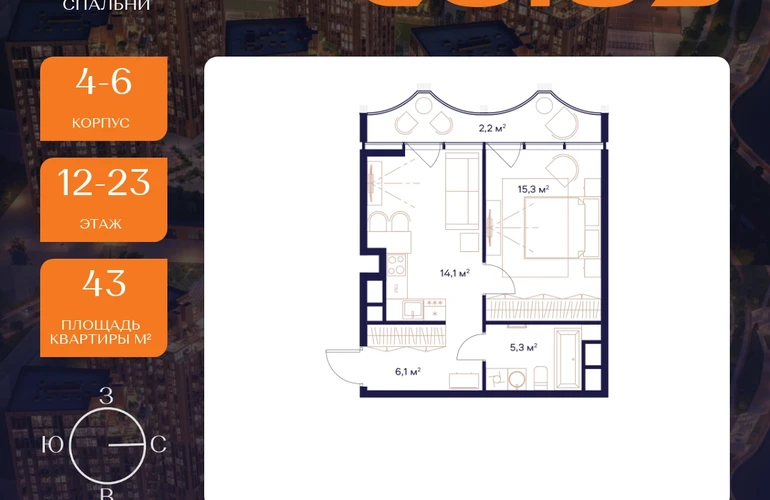 Продаётся 1-комнатная квартира площадью 43 м² на 12 этаже в Жилом Комплексе "Союз". Уникальный жилой спортивно-оздоровительный квартал с рекордным количеством олимпийских видов спорта, доступных жителям 24/7. Из 9 га застройки 7га отданы под спортивную инфраструктуру. В открытом доступе у жителей спортивно-оздоровительного кластера юности и здоровья: - Ледовая арена для хоккея и фигурного катания, - Футбольные поля для тренировок, - Спортивный зал для фехтования, - Бассейн на 6 дорожек, - Центр единоборств, - 4 крытых площадки для настольного тенниса, - 7 теннисных кортов (крытых и открытых), - 4 крытых площадки для сквоша, - Легкоатлетический стадион, - площадки для баскетбола и волейбола. На выбор будущим жильцам ЖК представляется 3 вида балконов, различные гардеробные и просторные холлы, продуманные планировочные решения с мастер-спальнями, кабинетами, санузлами, постирочными, а также панорамное остекление. Комплекс оснащен разнообразной собственной инфраструктурой. На территории ЖК есть зона для пикников, розарий, сосновые, каштановые и дубовые аллеи, площадки ворк-аута и йоги, а также ресторан «ШАБАДА» Сосо Павлиашвили с просторной прогулочной зоной с водными элементами, садом ароматных трав и открытой сценой. В благоустройство квартала входит закрытый и безопасный двор, фонтан, арт-объекты, световой дизайн, интерактивные площадки для детей разных возрастов. Рядом с Комплексом располагается большое количество локаций, способствующих активному времяпрепровождению: - Парк Будущего, - Леоновская роща, - Национальный парк, - Лосиный остров, - Парк Сокольники, - Главный Ботанический сад, - РАН, - ВДНХ, - Парк Останкино, - Парк Свиблово, - Пойма реки Яуза.О застройщике