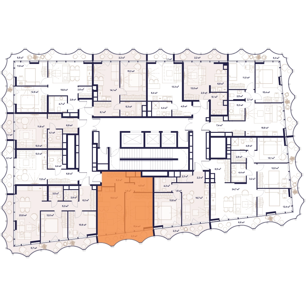 Уникальные форматы квартир с мастер-спальнями, приватными террасами, балконами, а также пентхаусы с открыточными видами на город.