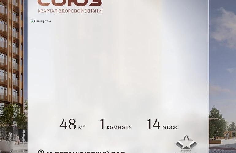 Рассрочка 0%Продаётся 1-комнатная квартира площадью 48 м² на 14 этаже в Жилом Комплексе «Союз».