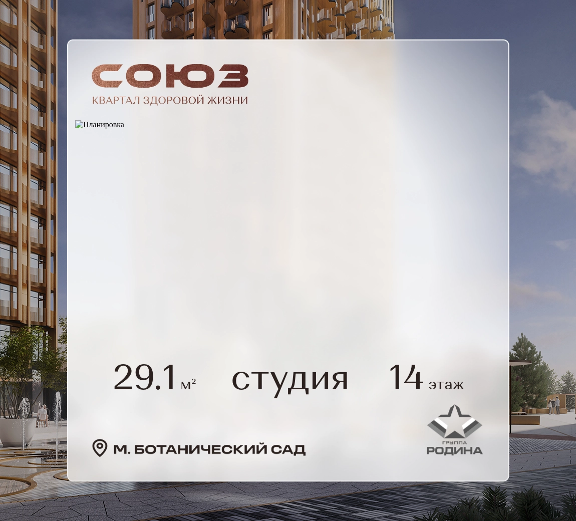 Рассрочка 0%Продаётся квартира-студия площадью 29.1 м² на 14 этаже в Жилом Комплексе «Союз».