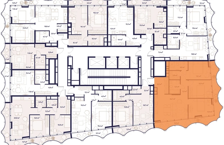 Уникальные форматы квартир с мастер-спальнями, приватными террасами, балконами, а также пентхаусы с открыточными видами на город.