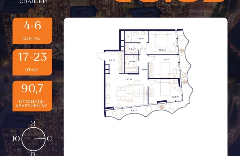 Продаётся 3-комнатная квартира площадью 90.7 м² на 17 этаже в Жилом Комплексе "Союз". Уникальный жилой спортивно-оздоровительный квартал с рекордным количеством олимпийских видов спорта, доступных жителям 24/7. Из 9 га застройки 7га отданы под спортивную инфраструктуру. В открытом доступе у жителей спортивно-оздоровительного кластера юности и здоровья: - Ледовая арена для хоккея и фигурного катания, - Футбольные поля для тренировок, - Спортивный зал для фехтования, - Бассейн на 6 дорожек, - Центр единоборств, - 4 крытых площадки для настольного тенниса, - 7 теннисных кортов (крытых и открытых), - 4 крытых площадки для сквоша, - Легкоатлетический стадион, - площадки для баскетбола и волейбола. На выбор будущим жильцам ЖК представляется 3 вида балконов, различные гардеробные и просторные холлы, продуманные планировочные решения с мастер-спальнями, кабинетами, санузлами, постирочными, а также панорамное остекление. Комплекс оснащен разнообразной собственной инфраструктурой. На территории ЖК есть зона для пикников, розарий, сосновые, каштановые и дубовые аллеи, площадки ворк-аута и йоги, а также ресторан «ШАБАДА» Сосо Павлиашвили с просторной прогулочной зоной с водными элементами, садом ароматных трав и открытой сценой. В благоустройство квартала входит закрытый и безопасный двор, фонтан, арт-объекты, световой дизайн, интерактивные площадки для детей разных возрастов. Рядом с Комплексом располагается большое количество локаций, способствующих активному времяпрепровождению: - Парк Будущего, - Леоновская роща, - Национальный парк, - Лосиный остров, - Парк Сокольники, - Главный Ботанический сад, - РАН, - ВДНХ, - Парк Останкино, - Парк Свиблово, - Пойма реки Яуза.О застройщике