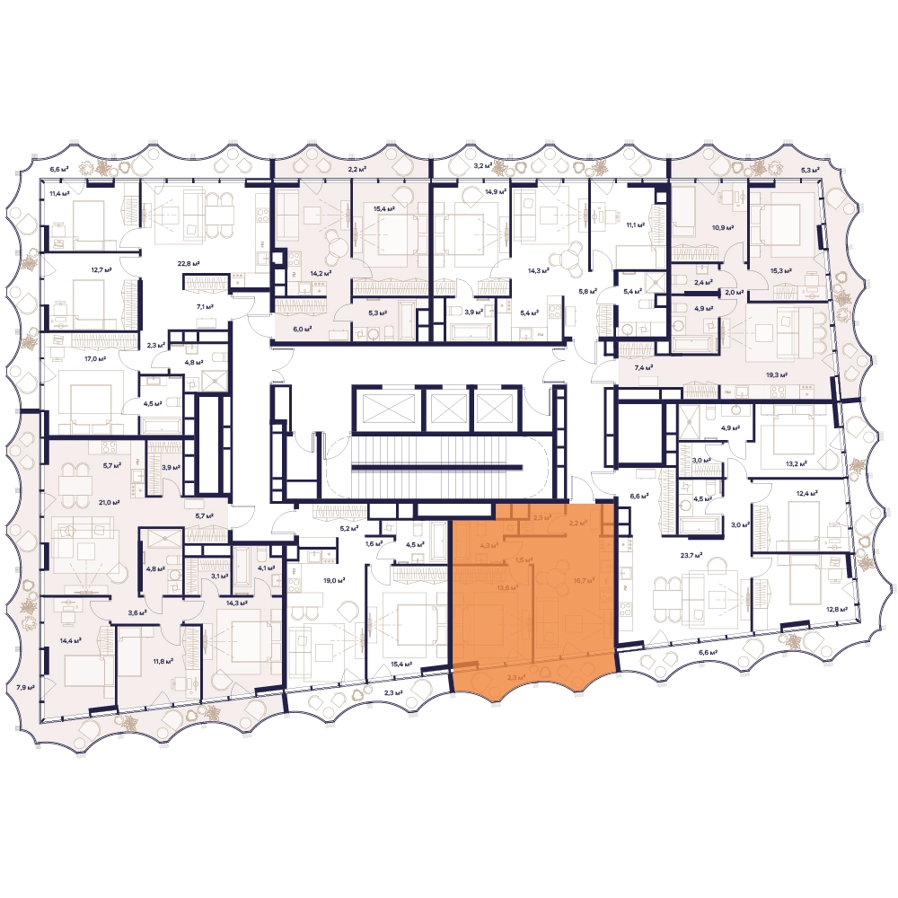 Уникальные форматы квартир с мастер-спальнями, приватными террасами, балконами, а также пентхаусы с открыточными видами на город.