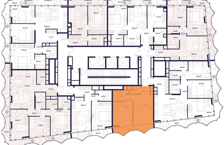 Уникальные форматы квартир с мастер-спальнями, приватными террасами, балконами, а также пентхаусы с открыточными видами на город.