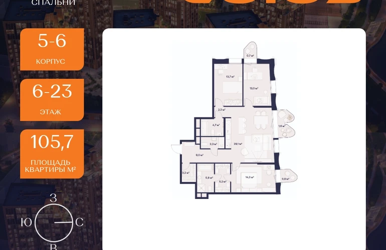 Продаётся 3-комнатная квартира площадью 105.7 м² на 6 этаже в Жилом Комплексе "Союз". Уникальный жилой спортивно-оздоровительный квартал с рекордным количеством олимпийских видов спорта, доступных жителям 24/7. Из 9 га застройки 7га отданы под спортивную инфраструктуру. В открытом доступе у жителей спортивно-оздоровительного кластера юности и здоровья: - Ледовая арена для хоккея и фигурного катания, - Футбольные поля для тренировок, - Спортивный зал для фехтования, - Бассейн на 6 дорожек, - Центр единоборств, - 4 крытых площадки для настольного тенниса, - 7 теннисных кортов (крытых и открытых), - 4 крытых площадки для сквоша, - Легкоатлетический стадион, - площадки для баскетбола и волейбола. На выбор будущим жильцам ЖК представляется 3 вида балконов, различные гардеробные и просторные холлы, продуманные планировочные решения с мастер-спальнями, кабинетами, санузлами, постирочными, а также панорамное остекление. Комплекс оснащен разнообразной собственной инфраструктурой. На территории ЖК есть зона для пикников, розарий, сосновые, каштановые и дубовые аллеи, площадки ворк-аута и йоги, а также ресторан «ШАБАДА» Сосо Павлиашвили с просторной прогулочной зоной с водными элементами, садом ароматных трав и открытой сценой. В благоустройство квартала входит закрытый и безопасный двор, фонтан, арт-объекты, световой дизайн, интерактивные площадки для детей разных возрастов. Рядом с Комплексом располагается большое количество локаций, способствующих активному времяпрепровождению: - Парк Будущего, - Леоновская роща, - Национальный парк, - Лосиный остров, - Парк Сокольники, - Главный Ботанический сад, - РАН, - ВДНХ, - Парк Останкино, - Парк Свиблово, - Пойма реки Яуза.О застройщике