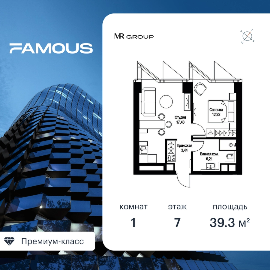 Прямая продажа от застройщика. Продаётся 1-к квартира общей площадью 39.30 кв. м с предчистовой отделкой на 7-м этаже премиального небоскреба Famous. Срок ввода в эксплуатацию - IV кв. 2024 г. Выдача ключей - II кв. 2025 г. Если к слову «будущее» подобрать архитектурный синоним, им непременно станет премиальный небоскреб Famous. Он расположен в закрытом квартале «Фили Сити» – настоящем городе в городе, окруженном зеленым ореолом из аллей и скверов, с инфраструктурой для жизни и отдыха самых взыскательных горожан. Резидентов Famous ждет особая привилегия – открывающиеся из окон бескрайние панорамы, с видами на парк Фили, Поклонную гору, Москва-реку и Москва-Сити. Эффектный ультрасовременный 57-этажный небоскреб, пластичный в нижней части, наверху трансформируется и взмывает ввысь выразительной скульптурой с обтекаемой поверхностью. Фасад украшенный стеклянными эркерами в виде прямых треугольных призм, словно олицетворяет собой идеально собранный пазл. Это безупречное решение для тех, кто не боится лидерства и высоты, не ищет простых путей, держит высокую планку во всем, не останавливается на достигнутом и живет в ритме мегаполиса. Не зря логотип Famous украшает графический элемент Триумфальной арки на Кутузовском проспекте – символ успеха и жизненных побед. Особенности дома: • Проект премиум-класса рядом с центром Москвы • Футуристическая авторская архитектура от бюро ADM • Ультрасовременные инженерные решения современных небоскрёбов • Элегантное решение орнаментальной композиции фасада от бюро ADM • Famous станет первым проектом в Москве с интерьерами лобби от международной архитектурной компании A ++ • Панорамное остекление по всему фасаду, головокружительные виды на достопримечательности Москвы, парк Фили, Москва-Сити и Поклонную гору • Европейский подход к благоустройству: площадь с фонтанами, парк-променад, детские и спортивные площадки, зоны отдыха • Продуманная концепция инфраструктуры: уютные кафе и рестораны, супермаркет, фитнес-студия, службы сервиса, детский центр развития • Эргономичные планировки от бюро Олега Клодта Транспортная доступность: • Удобный выезд на Кутузовский проспект и ТТК • В пешей доступности станции метро «Фили», «Багратионовская» и «Парк Победы» Компания MR Group предлагает своим клиентам специальные условия приобретения квартир в рамках программ ипотечного кредитования от банков-партнеров.О застройщике