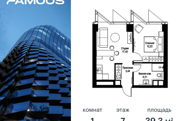 Прямая продажа от застройщика. Продаётся 1-к квартира общей площадью 39.30 кв. м с предчистовой отделкой на 7-м этаже премиального небоскреба Famous. Срок ввода в эксплуатацию - IV кв. 2024 г. Выдача ключей - II кв. 2025 г. Если к слову «будущее» подобрать архитектурный синоним, им непременно станет премиальный небоскреб Famous. Он расположен в закрытом квартале «Фили Сити» – настоящем городе в городе, окруженном зеленым ореолом из аллей и скверов, с инфраструктурой для жизни и отдыха самых взыскательных горожан. Резидентов Famous ждет особая привилегия – открывающиеся из окон бескрайние панорамы, с видами на парк Фили, Поклонную гору, Москва-реку и Москва-Сити. Эффектный ультрасовременный 57-этажный небоскреб, пластичный в нижней части, наверху трансформируется и взмывает ввысь выразительной скульптурой с обтекаемой поверхностью. Фасад украшенный стеклянными эркерами в виде прямых треугольных призм, словно олицетворяет собой идеально собранный пазл. Это безупречное решение для тех, кто не боится лидерства и высоты, не ищет простых путей, держит высокую планку во всем, не останавливается на достигнутом и живет в ритме мегаполиса. Не зря логотип Famous украшает графический элемент Триумфальной арки на Кутузовском проспекте – символ успеха и жизненных побед. Особенности дома: • Проект премиум-класса рядом с центром Москвы • Футуристическая авторская архитектура от бюро ADM • Ультрасовременные инженерные решения современных небоскрёбов • Элегантное решение орнаментальной композиции фасада от бюро ADM • Famous станет первым проектом в Москве с интерьерами лобби от международной архитектурной компании A ++ • Панорамное остекление по всему фасаду, головокружительные виды на достопримечательности Москвы, парк Фили, Москва-Сити и Поклонную гору • Европейский подход к благоустройству: площадь с фонтанами, парк-променад, детские и спортивные площадки, зоны отдыха • Продуманная концепция инфраструктуры: уютные кафе и рестораны, супермаркет, фитнес-студия, службы сервиса, детский центр развития • Эргономичные планировки от бюро Олега Клодта Транспортная доступность: • Удобный выезд на Кутузовский проспект и ТТК • В пешей доступности станции метро «Фили», «Багратионовская» и «Парк Победы» Компания MR Group предлагает своим клиентам специальные условия приобретения квартир в рамках программ ипотечного кредитования от банков-партнеров.О застройщике