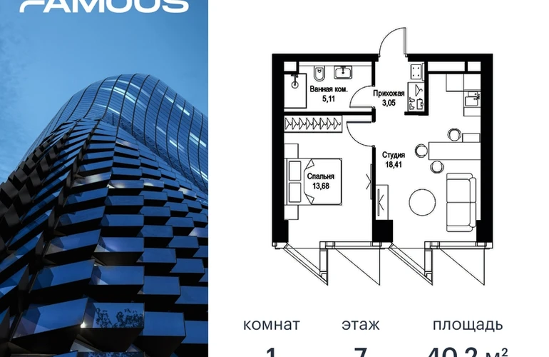 Прямая продажа от застройщика. Продаётся 1-к квартира общей площадью 40.25 кв. м с предчистовой отделкой на 7-м этаже премиального небоскреба Famous. Срок ввода в эксплуатацию - IV кв. 2024 г. Выдача ключей - II кв. 2025 г. Если к слову «будущее» подобрать архитектурный синоним, им непременно станет премиальный небоскреб Famous. Он расположен в закрытом квартале «Фили Сити» – настоящем городе в городе, окруженном зеленым ореолом из аллей и скверов, с инфраструктурой для жизни и отдыха самых взыскательных горожан. Резидентов Famous ждет особая привилегия – открывающиеся из окон бескрайние панорамы, с видами на парк Фили, Поклонную гору, Москва-реку и Москва-Сити. Эффектный ультрасовременный 57-этажный небоскреб, пластичный в нижней части, наверху трансформируется и взмывает ввысь выразительной скульптурой с обтекаемой поверхностью. Фасад украшенный стеклянными эркерами в виде прямых треугольных призм, словно олицетворяет собой идеально собранный пазл. Это безупречное решение для тех, кто не боится лидерства и высоты, не ищет простых путей, держит высокую планку во всем, не останавливается на достигнутом и живет в ритме мегаполиса. Не зря логотип Famous украшает графический элемент Триумфальной арки на Кутузовском проспекте – символ успеха и жизненных побед. Особенности дома: • Проект премиум-класса рядом с центром Москвы • Футуристическая авторская архитектура от бюро ADM • Ультрасовременные инженерные решения современных небоскрёбов • Элегантное решение орнаментальной композиции фасада от бюро ADM • Famous станет первым проектом в Москве с интерьерами лобби от международной архитектурной компании A ++ • Панорамное остекление по всему фасаду, головокружительные виды на достопримечательности Москвы, парк Фили, Москва-Сити и Поклонную гору • Европейский подход к благоустройству: площадь с фонтанами, парк-променад, детские и спортивные площадки, зоны отдыха • Продуманная концепция инфраструктуры: уютные кафе и рестораны, супермаркет, фитнес-студия, службы сервиса, детский центр развития • Эргономичные планировки от бюро Олега Клодта Транспортная доступность: • Удобный выезд на Кутузовский проспект и ТТК • В пешей доступности станции метро «Фили», «Багратионовская» и «Парк Победы» Компания MR Group предлагает своим клиентам специальные условия приобретения квартир в рамках программ ипотечного кредитования от банков-партнеров.О застройщике