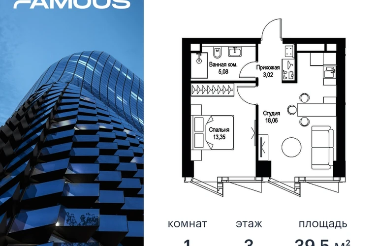 Прямая продажа от застройщика. Продаётся 1-к квартира общей площадью 39.51 кв. м с предчистовой отделкой на 3-м этаже премиального небоскреба Famous. Срок ввода в эксплуатацию - IV кв. 2024 г. Выдача ключей - II кв. 2025 г. Если к слову «будущее» подобрать архитектурный синоним, им непременно станет премиальный небоскреб Famous. Он расположен в закрытом квартале «Фили Сити» – настоящем городе в городе, окруженном зеленым ореолом из аллей и скверов, с инфраструктурой для жизни и отдыха самых взыскательных горожан. Резидентов Famous ждет особая привилегия – открывающиеся из окон бескрайние панорамы, с видами на парк Фили, Поклонную гору, Москва-реку и Москва-Сити. Эффектный ультрасовременный 57-этажный небоскреб, пластичный в нижней части, наверху трансформируется и взмывает ввысь выразительной скульптурой с обтекаемой поверхностью. Фасад украшенный стеклянными эркерами в виде прямых треугольных призм, словно олицетворяет собой идеально собранный пазл. Это безупречное решение для тех, кто не боится лидерства и высоты, не ищет простых путей, держит высокую планку во всем, не останавливается на достигнутом и живет в ритме мегаполиса. Не зря логотип Famous украшает графический элемент Триумфальной арки на Кутузовском проспекте – символ успеха и жизненных побед. Особенности дома: • Проект премиум-класса рядом с центром Москвы • Футуристическая авторская архитектура от бюро ADM • Ультрасовременные инженерные решения современных небоскрёбов • Элегантное решение орнаментальной композиции фасада от бюро ADM • Famous станет первым проектом в Москве с интерьерами лобби от международной архитектурной компании A ++ • Панорамное остекление по всему фасаду, головокружительные виды на достопримечательности Москвы, парк Фили, Москва-Сити и Поклонную гору • Европейский подход к благоустройству: площадь с фонтанами, парк-променад, детские и спортивные площадки, зоны отдыха • Продуманная концепция инфраструктуры: уютные кафе и рестораны, супермаркет, фитнес-студия, службы сервиса, детский центр развития • Эргономичные планировки от бюро Олега Клодта Транспортная доступность: • Удобный выезд на Кутузовский проспект и ТТК • В пешей доступности станции метро «Фили», «Багратионовская» и «Парк Победы» Компания MR Group предлагает своим клиентам специальные условия приобретения квартир в рамках программ ипотечного кредитования от банков-партнеров.О застройщике