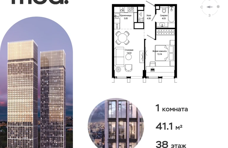Прямая продажа от застройщика. Жилой комплекс премиум-класса Mod. Продается 1-к квартира общей площадью 41.14 кв. м с предчистовой отделкой в ЖК Mod на 38-м этаже 44 этажного дома. Mod - жилой комплекс премиум-класса в историческом районе Москвы Марьина Роща. Пятый корпус станет частью единого высотного ансамбля, который поднимается над столицей и очерчивает новый горизонт города. Расположение корпуса Mod.C отличается тем, что виды на юго-запад Москвы не ограничены существующей застройкой. Почти все главные доминанты столицы — как на ладони: от сталинских высоток до небоскрёбов делового центра. Любоваться достопримечательностями будет вдвойне приятнее через панорамные окна. Закрытая территория жилого комплекса, продуманное благоустройство, эксплуатируемые кровли стилобата, образовательный центр с детским садом создают приватное пространство для тихой семейной жизни, а городская площадь с фонтанами, ресторан, супермаркет, коммерческая инфраструктура на первых этажах привносят созвучную с ритмом города динамику. Преимущества проекта: • В шаговой доступности новый деловой кластер Москвы • Выразительная авторская архитектура • Единственные в Москве фасады башен из натурального камня • Панорамное остекление и высота потолков до 4,8 м • Квартиры и апартаменты с отделкой MR Base • Многоуровневое благоустройство с зонированием на закрытой территории • Многофункциональный образовательный детский центр с детским садом • Двухуровневый подземный паркинг Транспортная доступность: • 5 минут пешком до станции метро «Марьина роща» • 3 минуты до ТТК • 15 минут до Цветного бульвара Компания MR Group предлагает своим клиентам специальные условия приобретения квартир в рамках программ ипотечного кредитования от банков-партнеров.О застройщике
