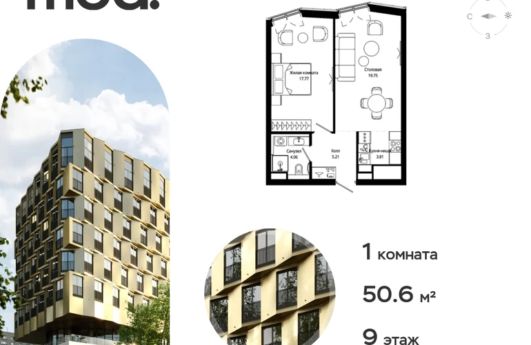 Прямая продажа жилого комплекса премиум-класса от застройщика. Продается 1-к квартира общей площадью 50.60 кв. м с чистовой отделкой в ЖК Mod на 9-м этаже 9 этажного дома. Mod - жилой комплекс премиум-класса в историческом районе Москвы Марьина Роща, состоящий из трех клубных домов (9 этажей) и трёх разноэтажных башен (44-55 этажей). Закрытая территория жилого комплекса, продуманное благоустройство, эксплуатируемые кровли стилобата, образовательный центр с детским садом создают приватное пространство для тихой семейной жизни, а городская площадь с фонтанами, ресторан, супермаркет, коммерческая инфраструктура на первых этажах привносят созвучную с ритмом города динамику. Преимущества проекта: • В шаговой доступности новый деловой кластер Москвы • Выразительная авторская архитектура • Единственные в Москве фасады башен из натурального камня • Панорамное остекление и высота потолков до 4,8 м • Квартиры и апартаменты с отделкой MR Base • Многоуровневое благоустройство с зонированием на закрытой территории • Многофункциональный образовательный детский центр с детским садом • Двухуровневый подземный паркинг Транспортная доступность: • 5 минут пешком до станции метро «Марьина роща» • 3 минуты до ТТК • 15 минут до Цветного бульвара Компания MR Group предлагает своим клиентам специальные условия приобретения квартир в рамках программ ипотечного кредитования от банков-партнеров.О застройщике