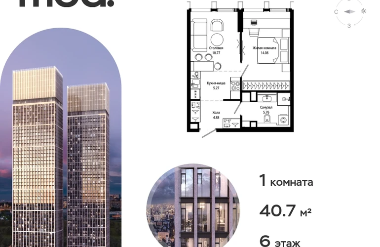 Прямая продажа от застройщика. Жилой комплекс премиум-класса Mod. Продается 1-к квартира общей площадью 40.74 кв. м с предчистовой отделкой в ЖК Mod на 6-м этаже 44 этажного дома. Mod - жилой комплекс премиум-класса в историческом районе Москвы Марьина Роща. Пятый корпус станет частью единого высотного ансамбля, который поднимается над столицей и очерчивает новый горизонт города. Расположение корпуса Mod.C отличается тем, что виды на юго-запад Москвы не ограничены существующей застройкой. Почти все главные доминанты столицы — как на ладони: от сталинских высоток до небоскрёбов делового центра. Любоваться достопримечательностями будет вдвойне приятнее через панорамные окна. Закрытая территория жилого комплекса, продуманное благоустройство, эксплуатируемые кровли стилобата, образовательный центр с детским садом создают приватное пространство для тихой семейной жизни, а городская площадь с фонтанами, ресторан, супермаркет, коммерческая инфраструктура на первых этажах привносят созвучную с ритмом города динамику. Преимущества проекта: • В шаговой доступности новый деловой кластер Москвы • Выразительная авторская архитектура • Единственные в Москве фасады башен из натурального камня • Панорамное остекление и высота потолков до 4,8 м • Квартиры и апартаменты с отделкой MR Base • Многоуровневое благоустройство с зонированием на закрытой территории • Многофункциональный образовательный детский центр с детским садом • Двухуровневый подземный паркинг Транспортная доступность: • 5 минут пешком до станции метро «Марьина роща» • 3 минуты до ТТК • 15 минут до Цветного бульвара Компания MR Group предлагает своим клиентам специальные условия приобретения квартир в рамках программ ипотечного кредитования от банков-партнеров.О застройщике