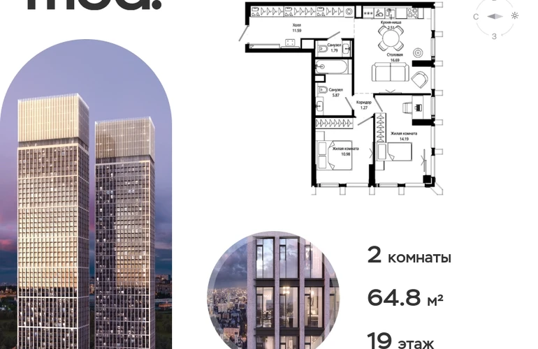 Прямая продажа от застройщика. Жилой комплекс премиум-класса Mod. Продается 2-к квартира общей площадью 64.89 кв. м с предчистовой отделкой в ЖК Mod на 19-м этаже 44 этажного дома. Mod - жилой комплекс премиум-класса в историческом районе Москвы Марьина Роща. Пятый корпус станет частью единого высотного ансамбля, который поднимается над столицей и очерчивает новый горизонт города. Расположение корпуса Mod.C отличается тем, что виды на юго-запад Москвы не ограничены существующей застройкой. Почти все главные доминанты столицы — как на ладони: от сталинских высоток до небоскрёбов делового центра. Любоваться достопримечательностями будет вдвойне приятнее через панорамные окна. Закрытая территория жилого комплекса, продуманное благоустройство, эксплуатируемые кровли стилобата, образовательный центр с детским садом создают приватное пространство для тихой семейной жизни, а городская площадь с фонтанами, ресторан, супермаркет, коммерческая инфраструктура на первых этажах привносят созвучную с ритмом города динамику. Преимущества проекта: • В шаговой доступности новый деловой кластер Москвы • Выразительная авторская архитектура • Единственные в Москве фасады башен из натурального камня • Панорамное остекление и высота потолков до 4,8 м • Квартиры и апартаменты с отделкой MR Base • Многоуровневое благоустройство с зонированием на закрытой территории • Многофункциональный образовательный детский центр с детским садом • Двухуровневый подземный паркинг Транспортная доступность: • 5 минут пешком до станции метро «Марьина роща» • 3 минуты до ТТК • 15 минут до Цветного бульвара Компания MR Group предлагает своим клиентам специальные условия приобретения квартир в рамках программ ипотечного кредитования от банков-партнеров.О застройщике