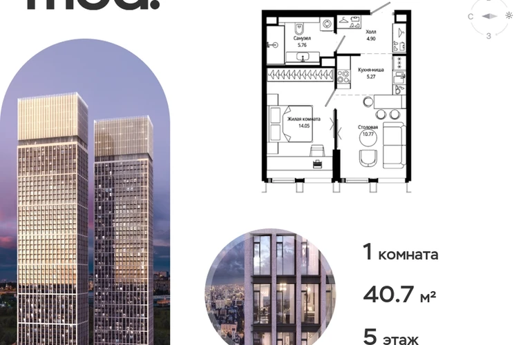 Прямая продажа от застройщика. Жилой комплекс премиум-класса Mod. Продается 1-к квартира общей площадью 40.68 кв. м с предчистовой отделкой в ЖК Mod на 5-м этаже 44 этажного дома. Mod - жилой комплекс премиум-класса в историческом районе Москвы Марьина Роща. Пятый корпус станет частью единого высотного ансамбля, который поднимается над столицей и очерчивает новый горизонт города. Расположение корпуса Mod.C отличается тем, что виды на юго-запад Москвы не ограничены существующей застройкой. Почти все главные доминанты столицы — как на ладони: от сталинских высоток до небоскрёбов делового центра. Любоваться достопримечательностями будет вдвойне приятнее через панорамные окна. Закрытая территория жилого комплекса, продуманное благоустройство, эксплуатируемые кровли стилобата, образовательный центр с детским садом создают приватное пространство для тихой семейной жизни, а городская площадь с фонтанами, ресторан, супермаркет, коммерческая инфраструктура на первых этажах привносят созвучную с ритмом города динамику. Преимущества проекта: • В шаговой доступности новый деловой кластер Москвы • Выразительная авторская архитектура • Единственные в Москве фасады башен из натурального камня • Панорамное остекление и высота потолков до 4,8 м • Квартиры и апартаменты с отделкой MR Base • Многоуровневое благоустройство с зонированием на закрытой территории • Многофункциональный образовательный детский центр с детским садом • Двухуровневый подземный паркинг Транспортная доступность: • 5 минут пешком до станции метро «Марьина роща» • 3 минуты до ТТК • 15 минут до Цветного бульвара Компания MR Group предлагает своим клиентам специальные условия приобретения квартир в рамках программ ипотечного кредитования от банков-партнеров.О застройщике