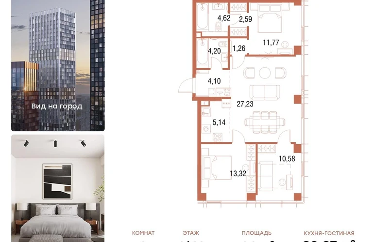 В продаже 3-комнатная квартира площадью 86 кв.м. с отделкой MR Base на 6-м этаже 43 этажного дома.