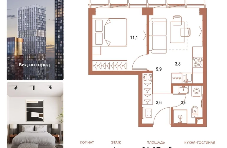 В продаже 1-комнатная квартира площадью 31,8 кв.м. с отделкой MR Ready на 3-м этаже 36 этажного дома.