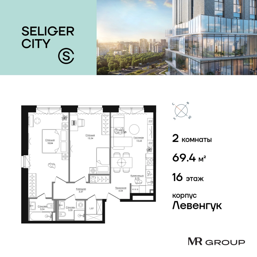 Прямая продажа от застройщика. Продаётся 2-к квартира общей площадью 69.55 кв. м без отделки в ЖК «Селигер Сити» на 16-м этаже 21 этажного дома. Селигер Сити — это уютное пространство, где предусмотрена застройка разной этажности, чтобы каждый покупатель мог выбрать то, что ему по душе: невысокие дома или небоскребы, с верхних этажей которых будут открываться отличные виды на город. Преимущества проекта: Первые три очереди сданы. • 2 минуты пешком от метро «Селигерская» • Архитектурное решение от голландского бюро MLA + • 8 корпусов разной этажности от 8 до 45 этажей • Одна из самых больших придомовых территорий в Москве — размером с 4 футбольных поля • Огороженная охраняемая территория, круглосуточное видеонаблюдение • Европейский подход к благоустройству от бюро WOWHaus: детские площадки для разных возрастов, спортивные площадки, площадки воркаута, дорожки для бега и пеших прогулок, скейтпарк, хоккейная площадка, площадка для выгула собак • Искусственный пруд на территории комплекса с благоустроенной набережной и мостом • Продуманная концепция инфраструктуры: уютные кафе и рестораны, супермаркет, магазин фермерских продуктов, бытовые службы, салон красоты, детские сады • Панорамные окна высотой до 2,5 м, в корпусах 3 очереди витражное остекление высотой до 4,2 м • Широкий выбор квартир — от компактных студий до просторных квартир с тремя спальнями и пентхаусов • Четыре вида дизайнерской отделки квартир от бюро Вlank Architects • Возможность купить квартиру с предчистовой отделкой white box • «Умный дом» на платформе Ujin. Система безопасности, вход на территорию и в подъезд по биометрии или BLE-метке, въезд в паркинг по считывателю номера, контроль климата. Все для комфортной жизни! • Лобби по индивидуальному дизайн проекту от европейского бюро Вlank Architects: лаунж-зоны, ресепшен, колясочная, помещение для мытья лап животным после прогулки • Подземный паркинг на 2189 машино-мест по индивидуальному дизайну, с зарядными устройствами для электромобилей, постами для подкачки шин и келлерами • Надежный девелопер с опытом премиальных проектов MR Group Расположение комплекса: • 2 минуты от станции метро «Селигерская» • 7 минут на машине до станции метро «Окружная» • Предусмотрен удобный выезд в сторону ТТК (всего 9 км или 15 минут без пробок) • МКАД в 10 минутах на машине Компания MR Group предлагает своим клиентам специальные условия приобретения квартир в рамках программ ипотечного кредитования от банков-партнеров.О застройщике