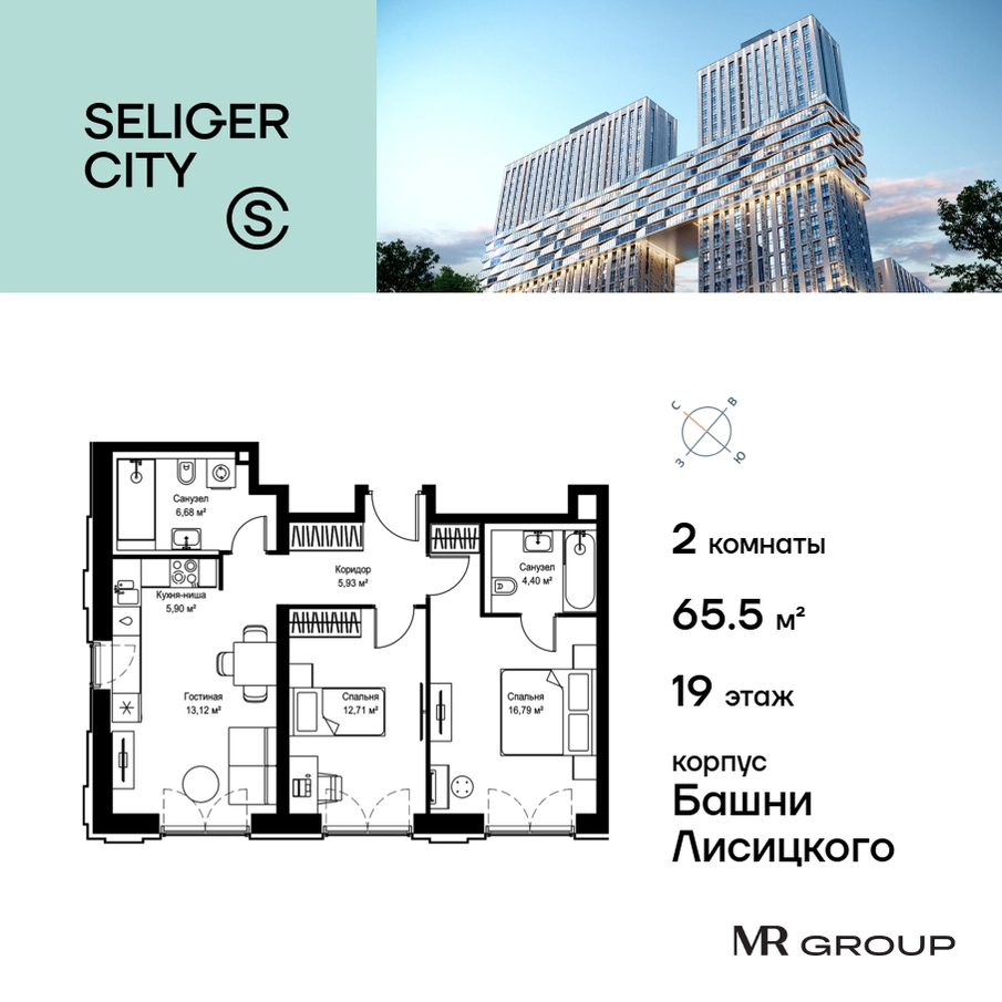 Прямая продажа от застройщика. Продаётся 2-к квартира общей площадью 65.53 кв. м без отделки в ЖК «Селигер Сити» на 19-м этаже башни Лисицкого. Корпуса четвертой очереди ЖК «Селигер сити» названы в честь трех великих представителей науки и архитектуры, новаторское видение которых — слишком смелое для своего времени — нашло воплощение в уникальных домах жилого комплекса. Вдохновленные авангардными идеями знаменитого советского архитектора Эля Лисицкого, архитекторы создали яркий центр притяжения всего района, задающий новый стандарт жизни в современном мегаполисе — две высокие «Башни Лисицкого» с современной интерпретацией горизонтального небоскреба. Преимущества проекта: Первые три очереди сданы. • 2 минуты пешком от метро «Селигерская» • Архитектурное решение от голландского бюро MLA + • 8 корпусов разной этажности от 8 до 45 этажей • Одна из самых больших придомовых территорий в Москве — размером с 4 футбольных поля • Огороженная охраняемая территория, круглосуточное видеонаблюдение • Европейский подход к благоустройству от бюро WOWHaus: детские площадки для разных возрастов, спортивные площадки, площадки воркаута, дорожки для бега и пеших прогулок, скейтпарк, хоккейная площадка, площадка для выгула собак • Искусственный пруд на территории комплекса с благоустроенной набережной и мостом • Продуманная концепция инфраструктуры: уютные кафе и рестораны, супермаркет, магазин фермерских продуктов, бытовые службы, салон красоты, детские сады • Панорамные окна высотой до 2,5 м, в корпусах 3 очереди витражное остекление высотой до 4,2 м • Широкий выбор квартир — от компактных студий до просторных квартир с тремя спальнями и пентхаусов • Четыре вида дизайнерской отделки квартир от бюро Вlank Architects • Возможность купить квартиру с предчистовой отделкой white box • «Умный дом» на платформе Ujin. Система безопасности, вход на территорию и в подъезд по биометрии или BLE-метке, въезд в паркинг по считывателю номера, контроль климата. Все для комфортной жизни! • Лобби по индивидуальному дизайн проекту от европейского бюро Вlank Architects: лаунж-зоны, ресепшен, колясочная, помещение для мытья лап животным после прогулки • Подземный паркинг на 2189 машино-мест по индивидуальному дизайну, с зарядными устройствами для электромобилей, постами для подкачки шин и келлерами • Надежный девелопер с опытом премиальных проектов MR Group Расположение комплекса: • 2 минуты от станции метро «Селигерская» • 7 минут на машине до станции метро «Окружная» • Предусмотрен удобный выезд в сторону ТТК (всего 9 км или 15 минут без пробок) • МКАД в 10 минутах на машине Компания MR Group предлагает своим клиентам специальные условия приобретения квартир в рамках программ ипотечного кредитования от банков-партнеров.О застройщике