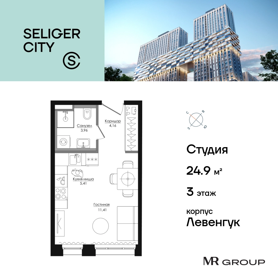 Прямая продажа от застройщика. Продаётся студия общей площадью 25.08 кв. м без отделки в ЖК «Селигер Сити» на 3-м этаже 21 этажного дома. Селигер Сити — это уютное пространство, где предусмотрена застройка разной этажности, чтобы каждый покупатель мог выбрать то, что ему по душе: невысокие дома или небоскребы, с верхних этажей которых будут открываться отличные виды на город. Преимущества проекта: Первые три очереди сданы. • 2 минуты пешком от метро «Селигерская» • Архитектурное решение от голландского бюро MLA + • 8 корпусов разной этажности от 8 до 45 этажей • Одна из самых больших придомовых территорий в Москве — размером с 4 футбольных поля • Огороженная охраняемая территория, круглосуточное видеонаблюдение • Европейский подход к благоустройству от бюро WOWHaus: детские площадки для разных возрастов, спортивные площадки, площадки воркаута, дорожки для бега и пеших прогулок, скейтпарк, хоккейная площадка, площадка для выгула собак • Искусственный пруд на территории комплекса с благоустроенной набережной и мостом • Продуманная концепция инфраструктуры: уютные кафе и рестораны, супермаркет, магазин фермерских продуктов, бытовые службы, салон красоты, детские сады • Панорамные окна высотой до 2,5 м, в корпусах 3 очереди витражное остекление высотой до 4,2 м • Широкий выбор квартир — от компактных студий до просторных квартир с тремя спальнями и пентхаусов • Четыре вида дизайнерской отделки квартир от бюро Вlank Architects • Возможность купить квартиру с предчистовой отделкой white box • «Умный дом» на платформе Ujin. Система безопасности, вход на территорию и в подъезд по биометрии или BLE-метке, въезд в паркинг по считывателю номера, контроль климата. Все для комфортной жизни! • Лобби по индивидуальному дизайн проекту от европейского бюро Вlank Architects: лаунж-зоны, ресепшен, колясочная, помещение для мытья лап животным после прогулки • Подземный паркинг на 2189 машино-мест по индивидуальному дизайну, с зарядными устройствами для электромобилей, постами для подкачки шин и келлерами • Надежный девелопер с опытом премиальных проектов MR Group Расположение комплекса: • 2 минуты от станции метро «Селигерская» • 7 минут на машине до станции метро «Окружная» • Предусмотрен удобный выезд в сторону ТТК (всего 9 км или 15 минут без пробок) • МКАД в 10 минутах на машине Компания MR Group предлагает своим клиентам специальные условия приобретения квартир в рамках программ ипотечного кредитования от банков-партнеров.О застройщике