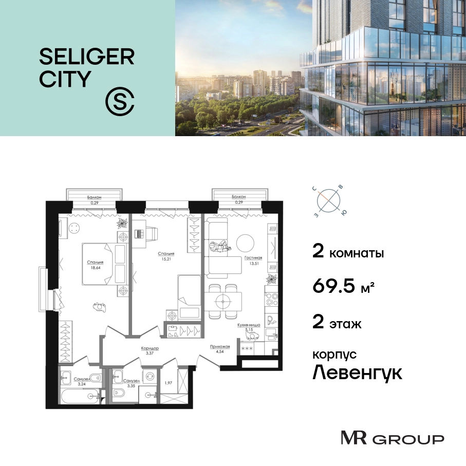 Прямая продажа от застройщика. Продаётся 2-к квартира общей площадью 70.02 кв. м без отделки в ЖК «Селигер Сити» на 2-м этаже 21 этажного дома. Селигер Сити — это уютное пространство, где предусмотрена застройка разной этажности, чтобы каждый покупатель мог выбрать то, что ему по душе: невысокие дома или небоскребы, с верхних этажей которых будут открываться отличные виды на город. Преимущества проекта: Первые три очереди сданы. • 2 минуты пешком от метро «Селигерская» • Архитектурное решение от голландского бюро MLA + • 8 корпусов разной этажности от 8 до 45 этажей • Одна из самых больших придомовых территорий в Москве — размером с 4 футбольных поля • Огороженная охраняемая территория, круглосуточное видеонаблюдение • Европейский подход к благоустройству от бюро WOWHaus: детские площадки для разных возрастов, спортивные площадки, площадки воркаута, дорожки для бега и пеших прогулок, скейтпарк, хоккейная площадка, площадка для выгула собак • Искусственный пруд на территории комплекса с благоустроенной набережной и мостом • Продуманная концепция инфраструктуры: уютные кафе и рестораны, супермаркет, магазин фермерских продуктов, бытовые службы, салон красоты, детские сады • Панорамные окна высотой до 2,5 м, в корпусах 3 очереди витражное остекление высотой до 4,2 м • Широкий выбор квартир — от компактных студий до просторных квартир с тремя спальнями и пентхаусов • Четыре вида дизайнерской отделки квартир от бюро Вlank Architects • Возможность купить квартиру с предчистовой отделкой white box • «Умный дом» на платформе Ujin. Система безопасности, вход на территорию и в подъезд по биометрии или BLE-метке, въезд в паркинг по считывателю номера, контроль климата. Все для комфортной жизни! • Лобби по индивидуальному дизайн проекту от европейского бюро Вlank Architects: лаунж-зоны, ресепшен, колясочная, помещение для мытья лап животным после прогулки • Подземный паркинг на 2189 машино-мест по индивидуальному дизайну, с зарядными устройствами для электромобилей, постами для подкачки шин и келлерами • Надежный девелопер с опытом премиальных проектов MR Group Расположение комплекса: • 2 минуты от станции метро «Селигерская» • 7 минут на машине до станции метро «Окружная» • Предусмотрен удобный выезд в сторону ТТК (всего 9 км или 15 минут без пробок) • МКАД в 10 минутах на машине Компания MR Group предлагает своим клиентам специальные условия приобретения квартир в рамках программ ипотечного кредитования от банков-партнеров.О застройщике